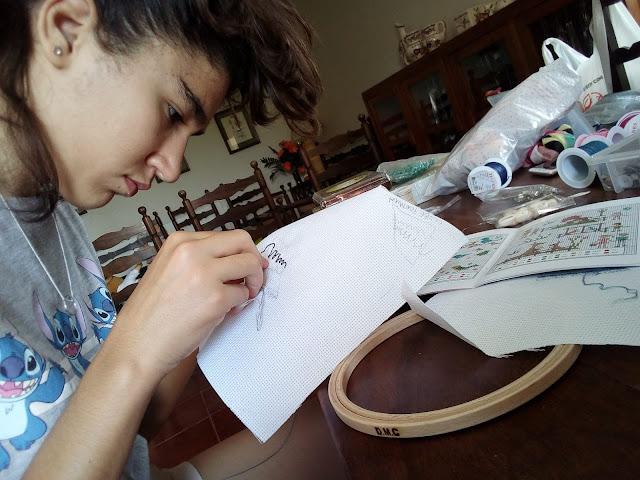 • Terminar um desenho que está iniciado, em ponto pé de flor
